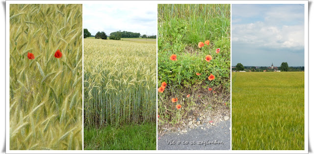 Cyklostezky u nás vedou převážně mezi poli,na jehož okraji naleznete vlčí máky,chrpy,heřmánek a ostrožku polní.Málem bych zapoměla na třezalku.Tak jak za mého dětství.